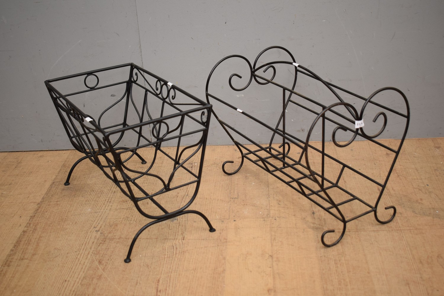 TWO MID-CENTURY METAL MAGAZINE RACKS (37H X 46W X 31D CM) (LEONARD JOEL DELIVERY SIZE: SMALL)