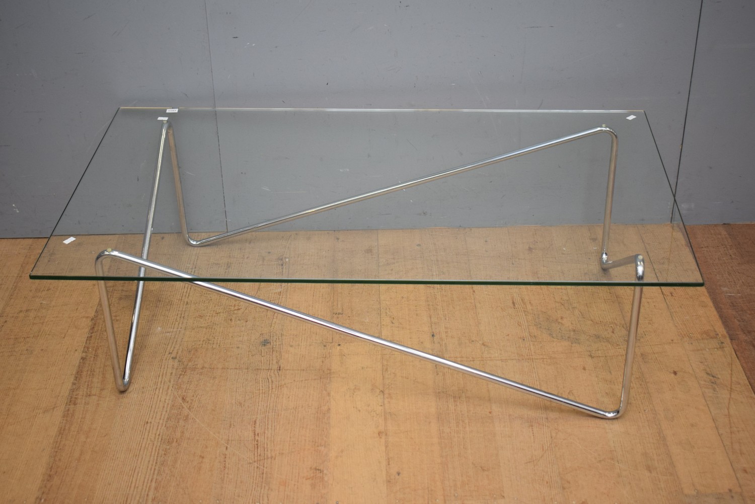 A LARGE VINTAGE CHROME AND GLASS RECTANGULAR COFFEE TABLE (H37 X W120 X D70 CM) (LEONARD JOEL DELIVERY SIZE: LARGE)