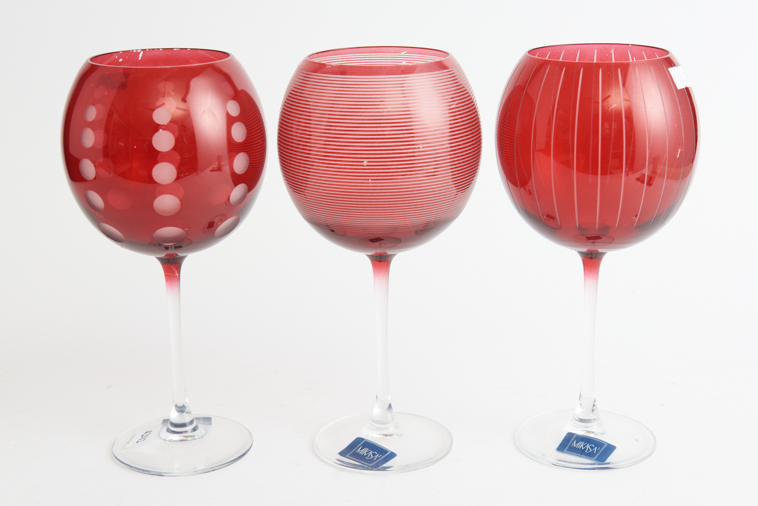 A SET OF THREE WINE GLASSES BY MIKASA, LEONARD JOEL LOCAL DELIVERY SIZE: SMALL
