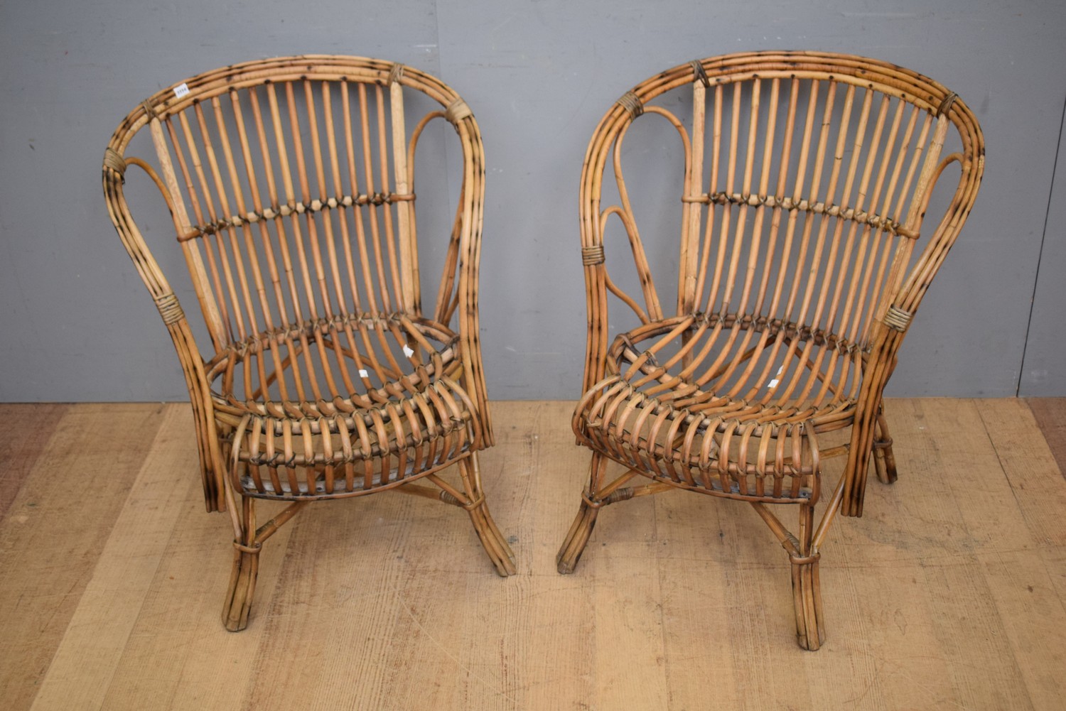 A PAIR OF CANE ARMCHAIRS, CIRCA 1930S (H74 X W64 X D68 CM) (LEONARD JOEL DELIVERY SIZE: MEDIUM)