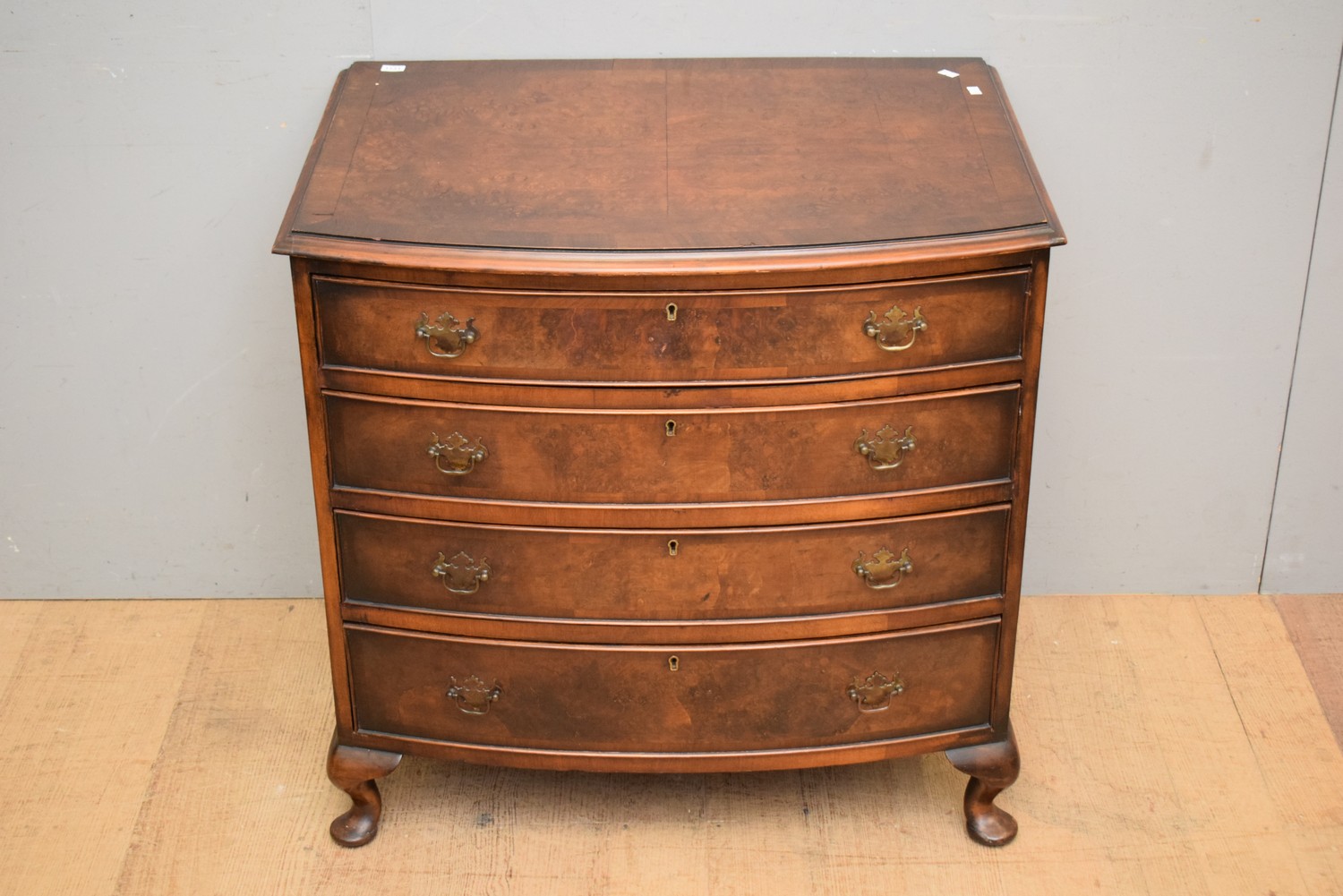 A GEORGIAN STYLE FOUR DRAWER CHEST WITH BURR WALNUT VENEER (A/F) (74H X 76W X 55D CM) (LEONARD JOEL DELIVERY SIZE: LARGE)