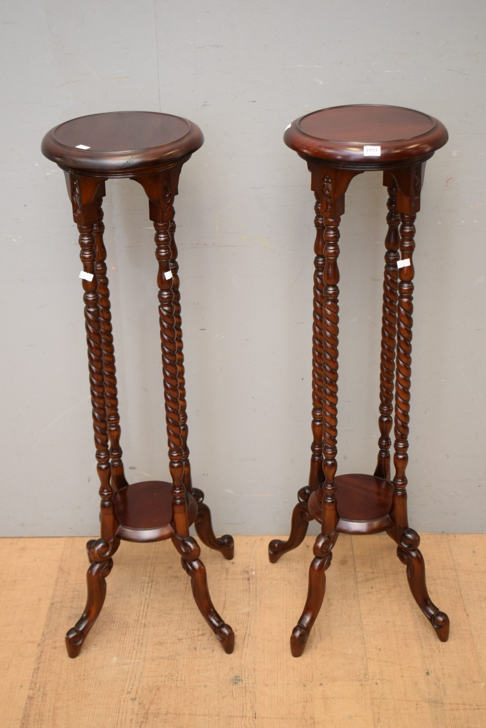 A MATCHING PAIR OF SOLID MAHOGANY PEDESTALS ( 100H X 33W CM) (LEONARD JOEL DELIVERY SIZE:SMALL)