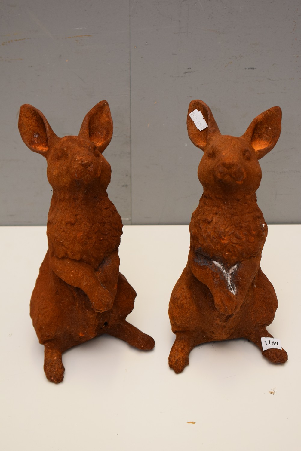 TWO CAST IRON RABBITS (30H CM) (LEONARD JOEL DELIVERY SIZE: SMALL)