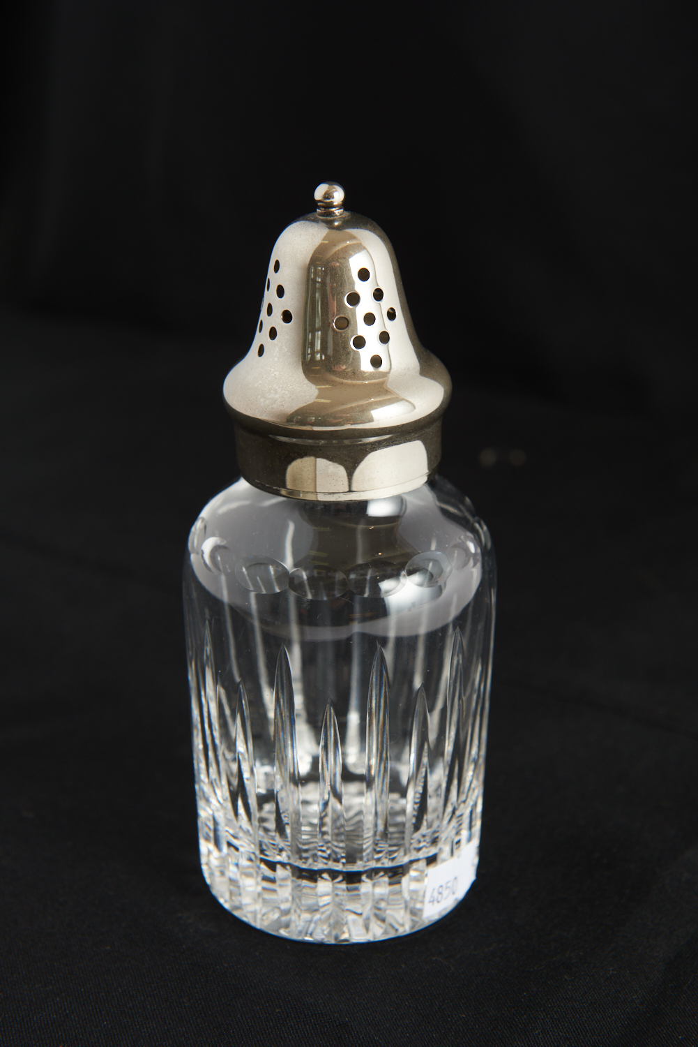A STUART CRYSTAL AND SILVER PLATED CASTOR H.17CM, LEONARD JOEL LOCAL DELIVERY SIZE: SMALL