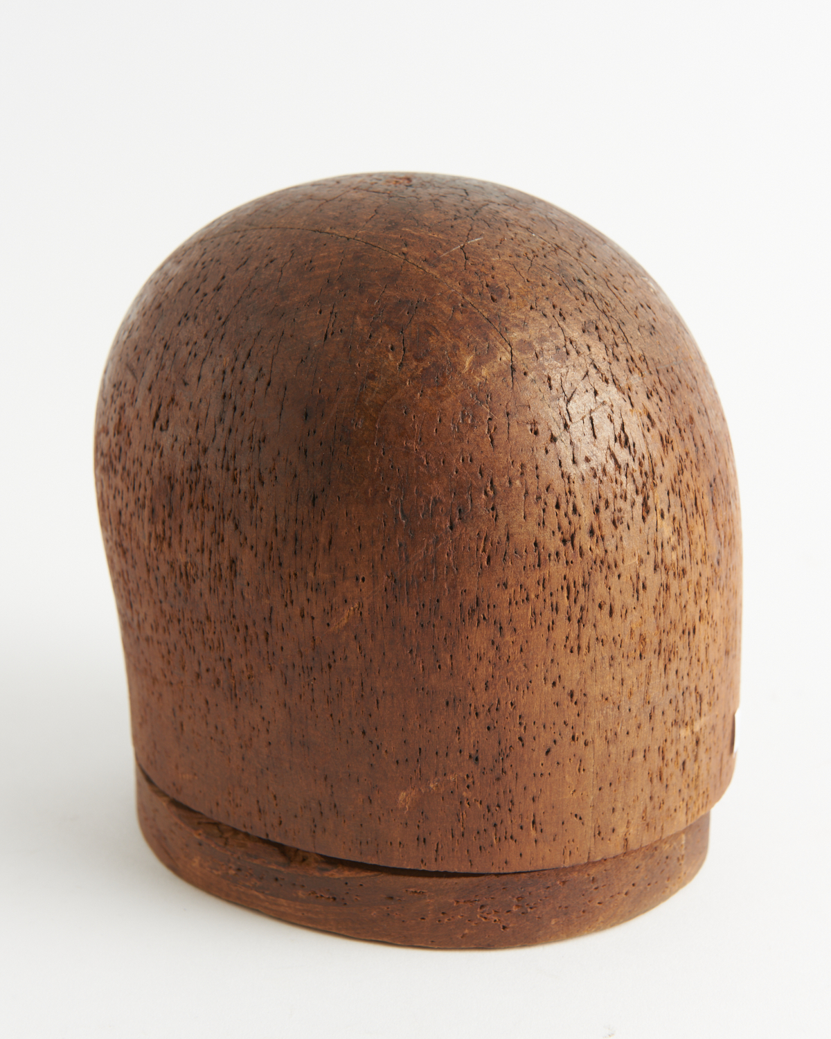 AN ANTIQUE PINE HAT BLOCK, WITH STAMPED NUMBERS TO THE UNDERSIDE, 19 CM HIGH, LEONARD JOEL LOCAL DELIVERY SIZE: SMALL