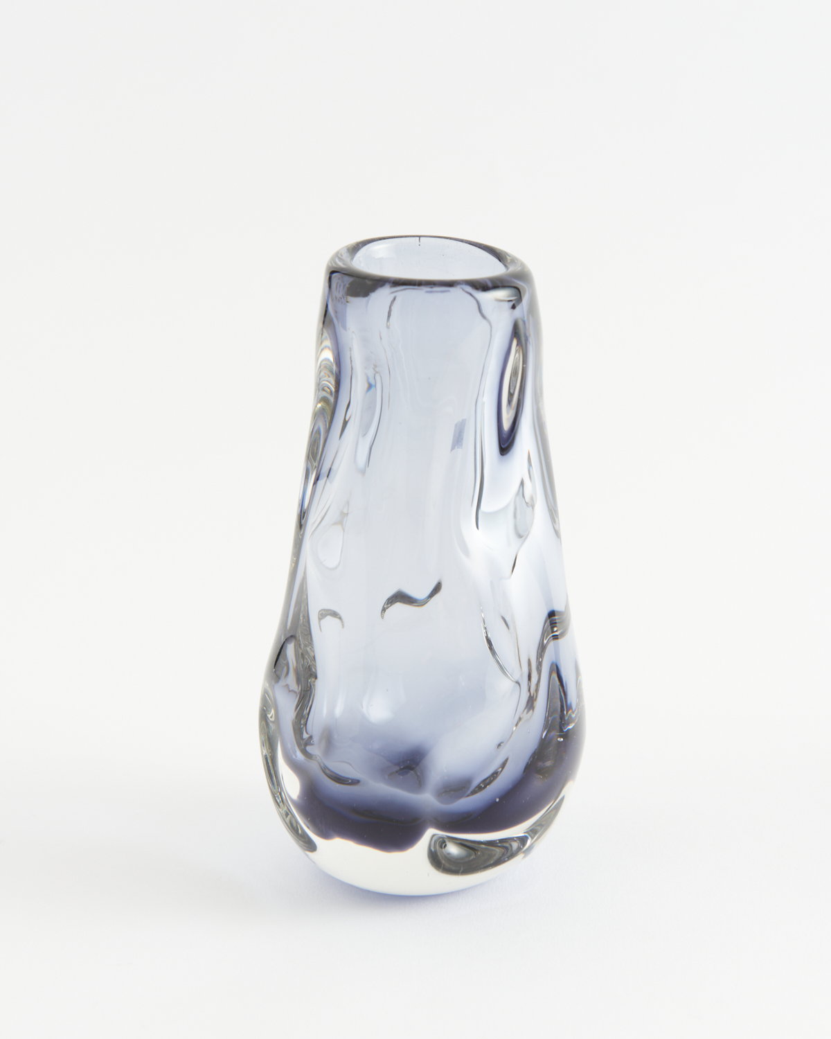 A 1960S ENGLISH WHITEFRIARS 'KNOBBLY' VASE IN PURPLE TONES, 19 CM HIGH (IRREGULAR), LEONARD JOEL LOCAL DELIVERY SIZE: SMALL