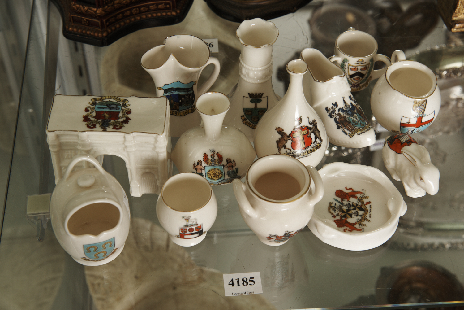 THIRTEEN MINIATURE CRESTED WARE PIECES, MOSTLY GOSS, INCLUDING UNUSUAL SHAPES AND FORMS, LEONARD JOEL LOCAL DELIVERY SIZE: SMALL