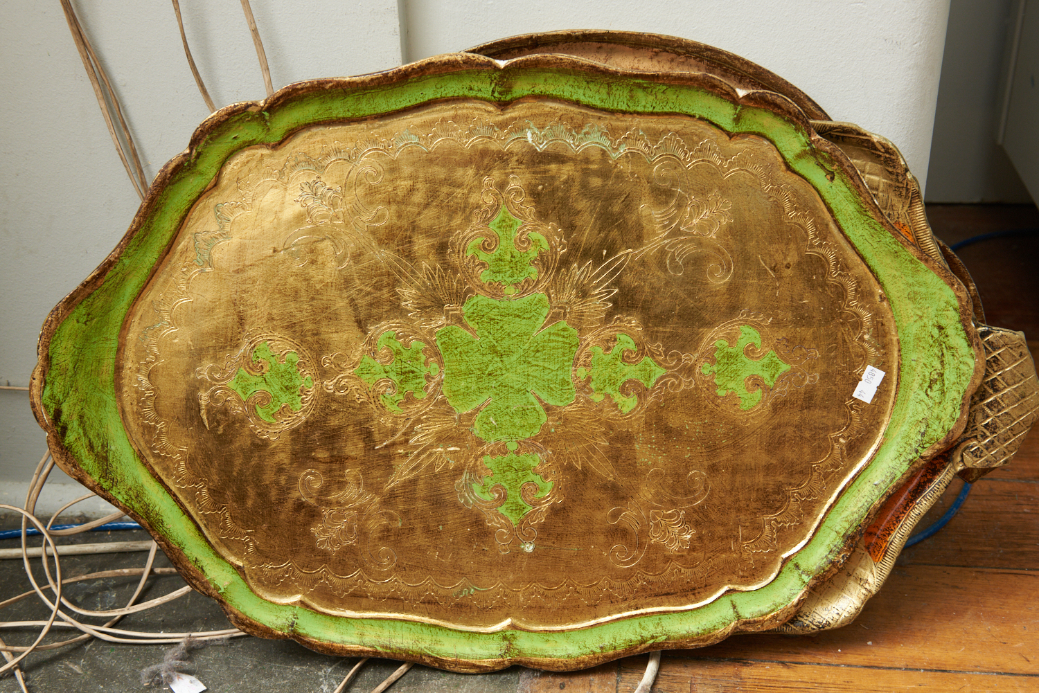THREE LARGE FLORENTINE GILT WOOD SERVING TRAYS, THE LARGEST 58 CM WIDE, LEONARD JOEL LOCAL DELIVERY SIZE: SMALL