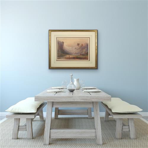 Work is in very good condition for age. Slight discolouration of paper is detected (mainly in the sky area) running across the top edge of the work. Work sits slightly loose from frame and glass. Framed with overall size: 80.5 x 100cm.