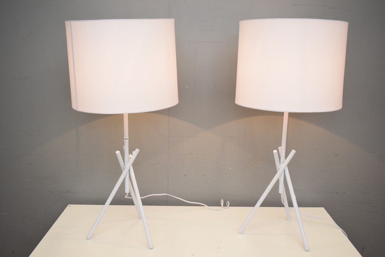 A PAIR OF CONTEMPORARY WHITE METAL TABLE LAMPS ( 83H X 38W CM) (LEONARD JOEL DELIVERY SIZE:MEDIUM)