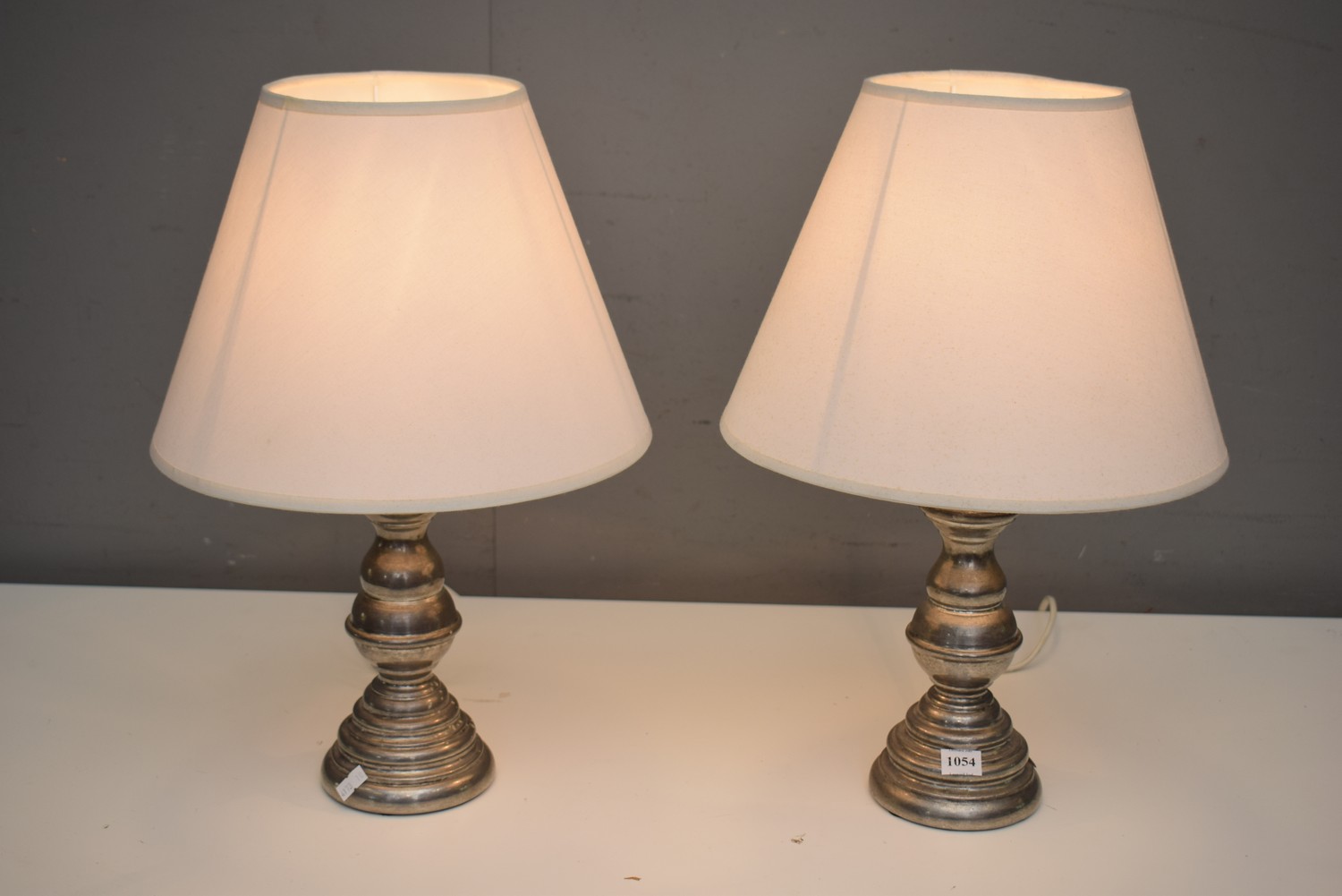 A PAIR OF CLASSICAL STYLE PEWTER TABLE LAMPS ( 46H X 30W CM) (LEONARD JOEL DELIVERY SIZE:SMALL)