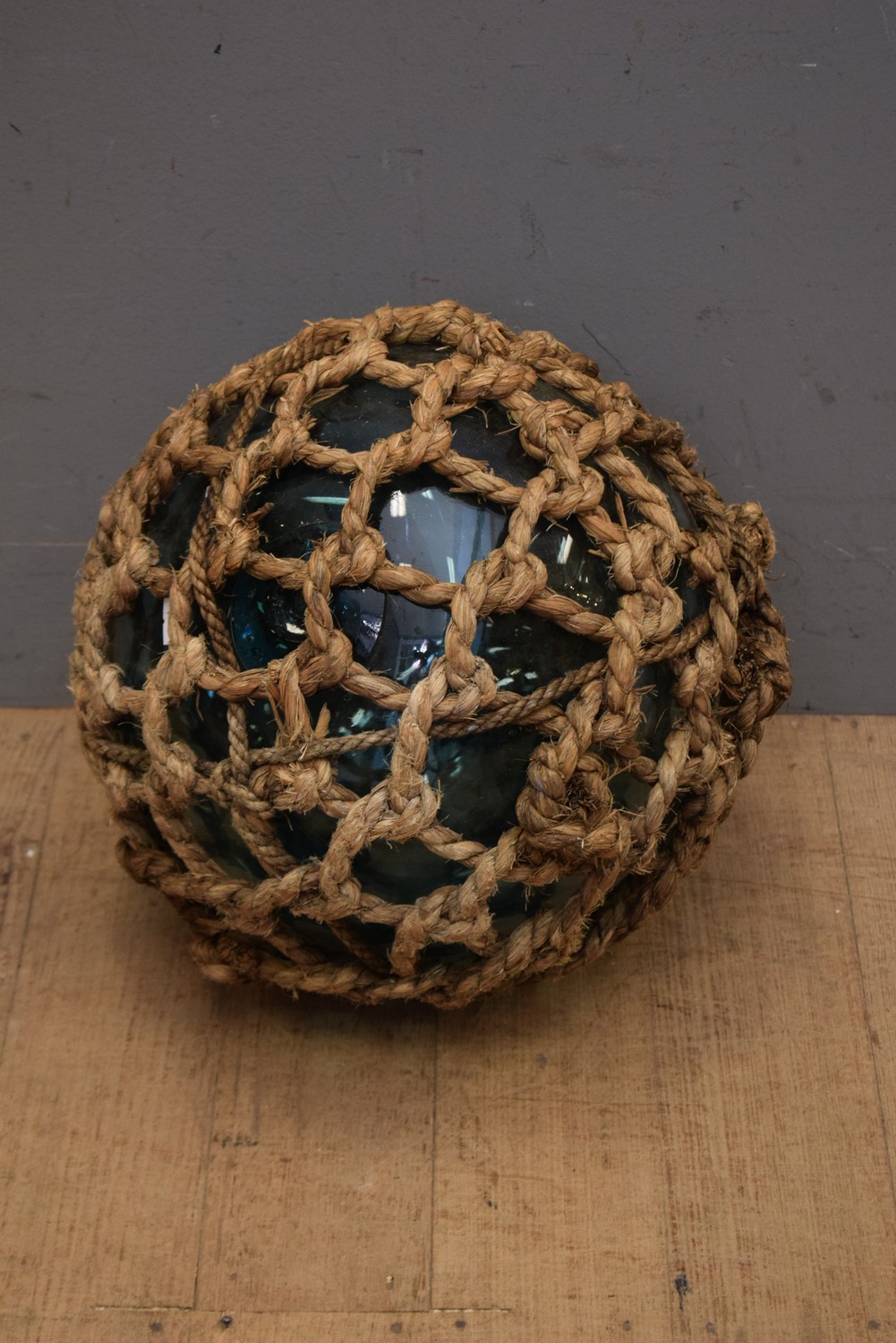 A LARGE 1920S GLASS AND NATURAL FIBRE COVERED SHIP/FISHING FLOAT/BUOY (D37 CM) (LEONARD JOEL DELIVERY SIZE: SMALL)