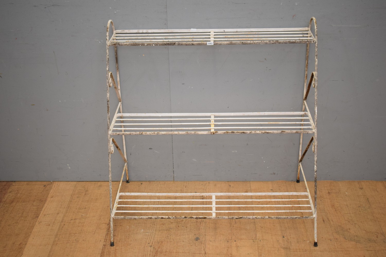 A 1950S THREE TIER METAL PLANT STAND ( 85H X 85W X 50D CM) (LEONARD JOEL DELIVERY SIZE: MEDIUM)
