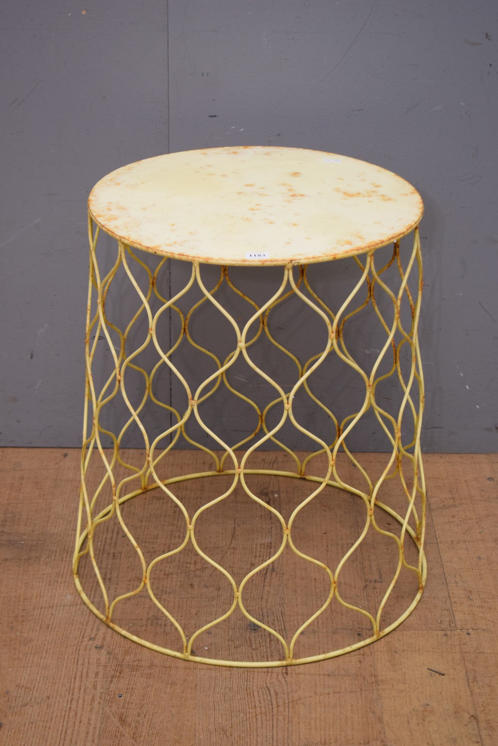 A VINTAGE YELLOW METAL TABLE/STOOL (A/F) (51H x 47D CM) (LEONARD JOEL DELIVERY SIZE: SMALL)