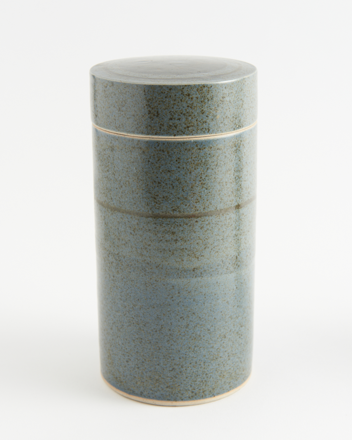 CHRIS SANDERS, CYLINDRICAL LIDDED JAR, 21 CM HIGH, LEONARD JOEL LOCAL DELIVERY SIZE: SMALL