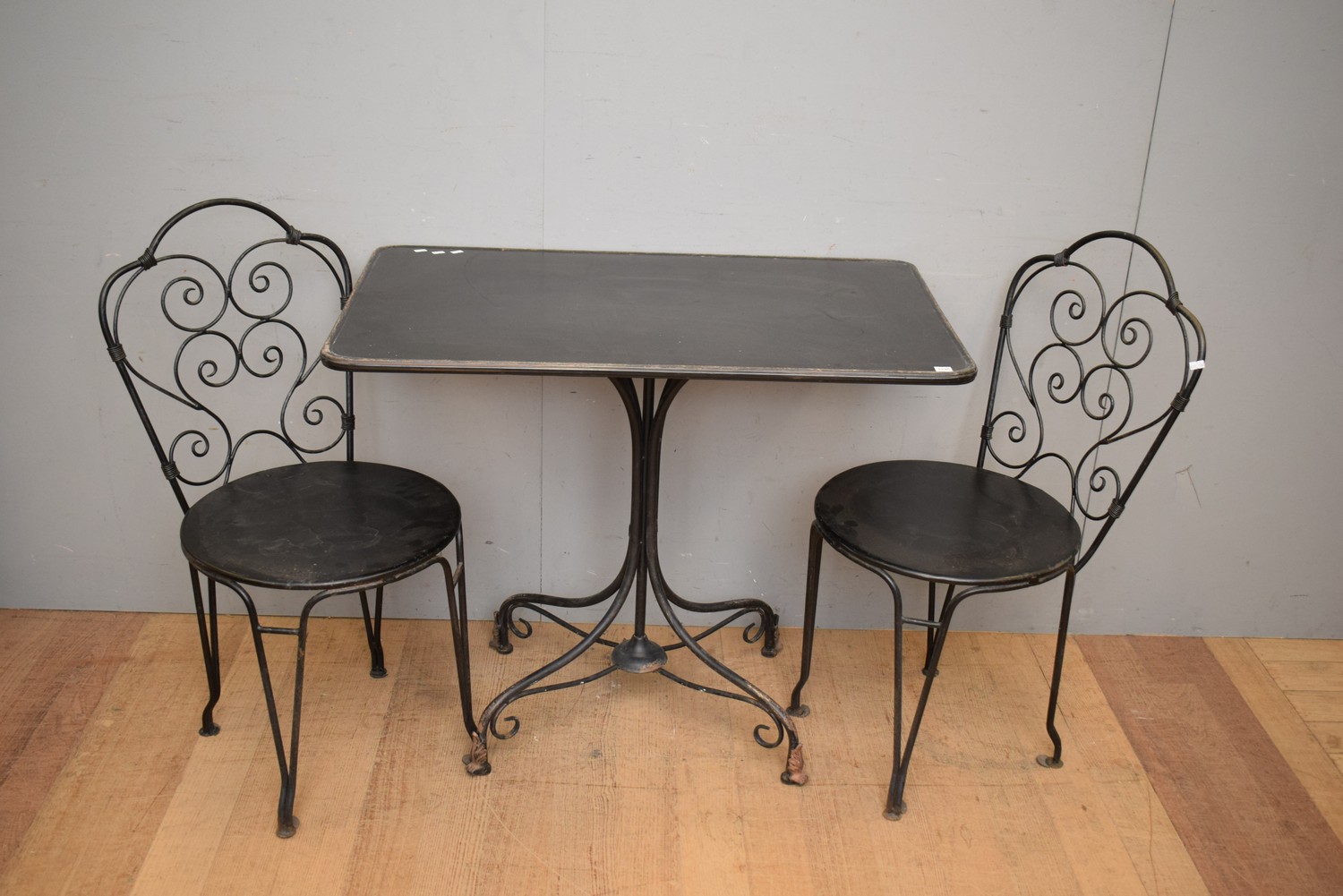 A THREE PIECE BISTRO SETTING (A/F) (81H X 99W X 60D CM) (LEONARD JOEL DELIVERY SIZE: LARGE)