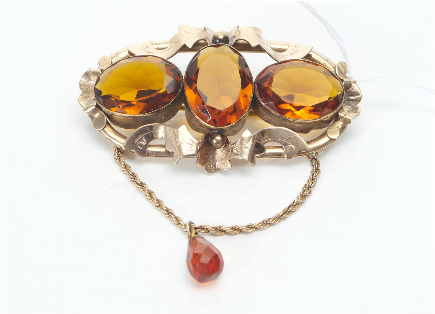 A VICTORIAN CITRINE BROOCH, GOLD LINED, 65X70MM