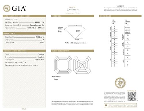 Accompanied by a GIA report numbered 2203411116, dated 6 January 2020, stating that the 11.00 carat diamond is K colour, VVS2 clarity, laser inscribed.