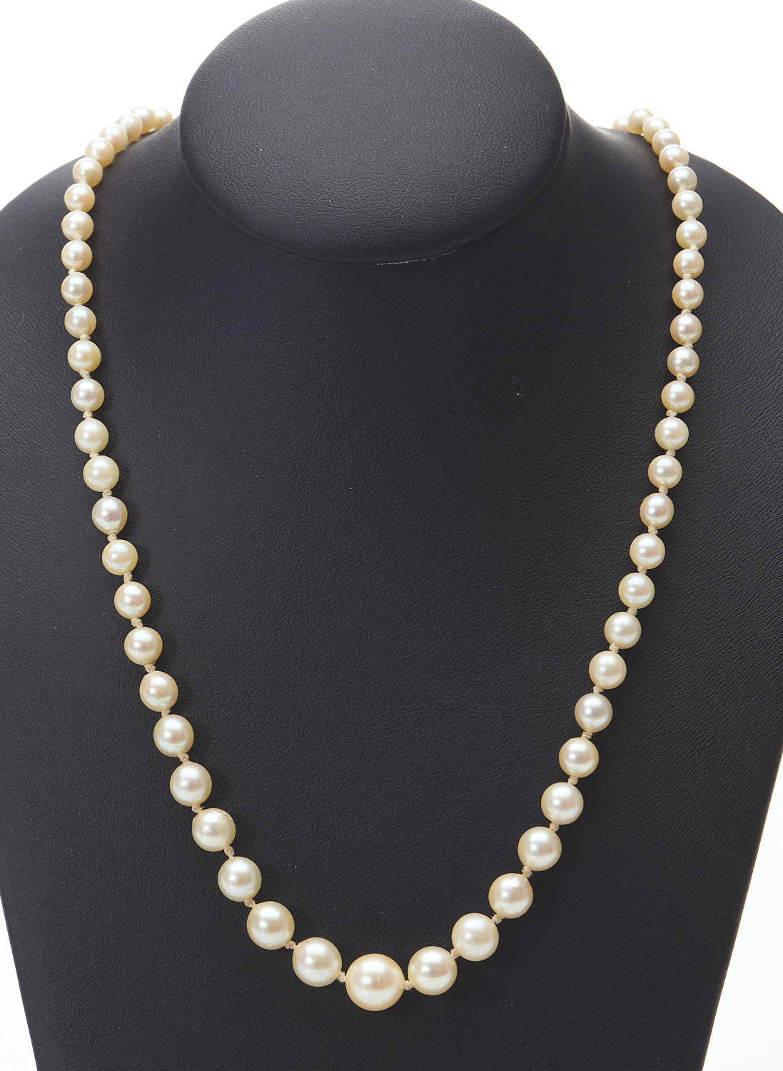 A STRAND OF VINTAGE GRADUATED CULTURED PEARLS MEASURING FROM 3.2MM TO 8MM, TO A PEARL AND PASTE SET CLASP, LENGTH 500MM