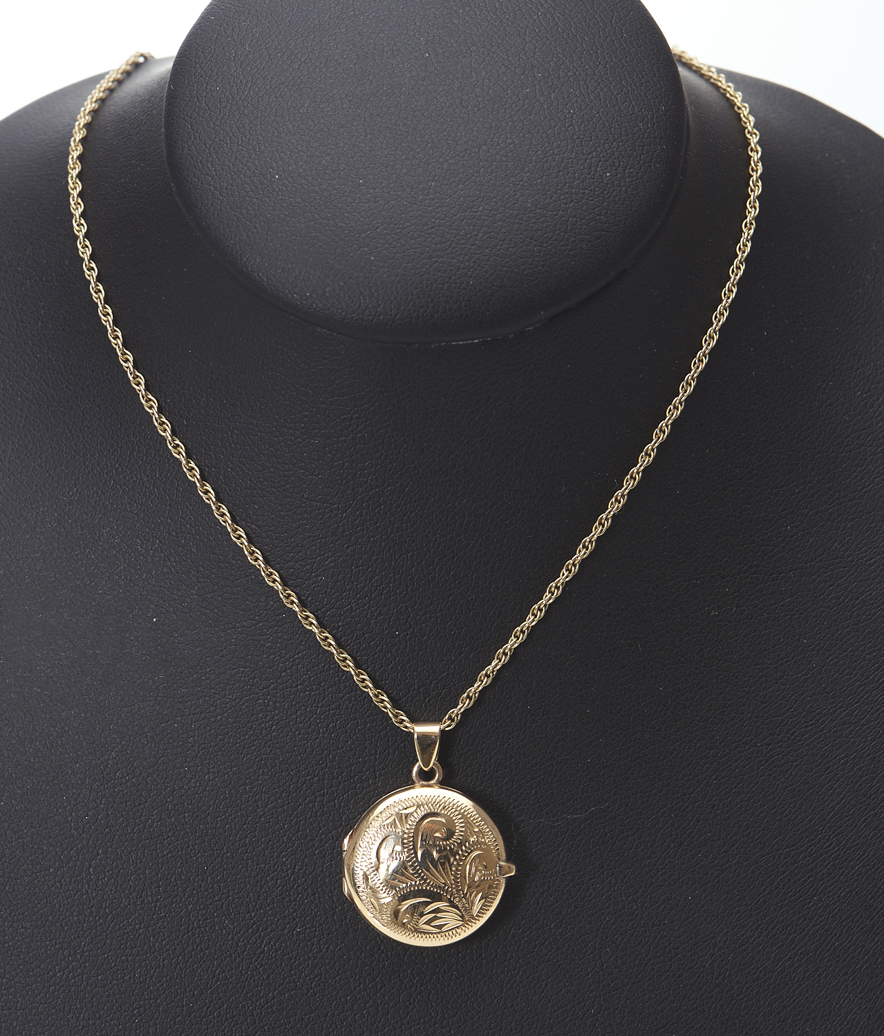 Diameter of the locket 16mm; stamped on the locket 9ct;
