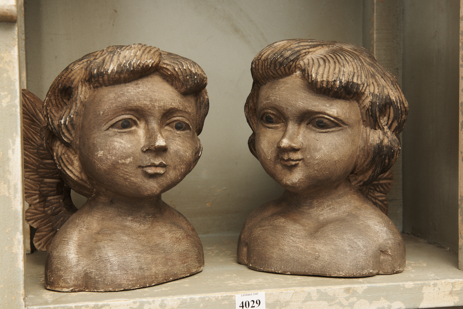 TWO VINTAGE FLORENTINE CARVED WOODEN CHERUB BUSTS, 21 CM HIGH, LEONARD JOEL LOCAL DELIVERY SIZE: SMALL