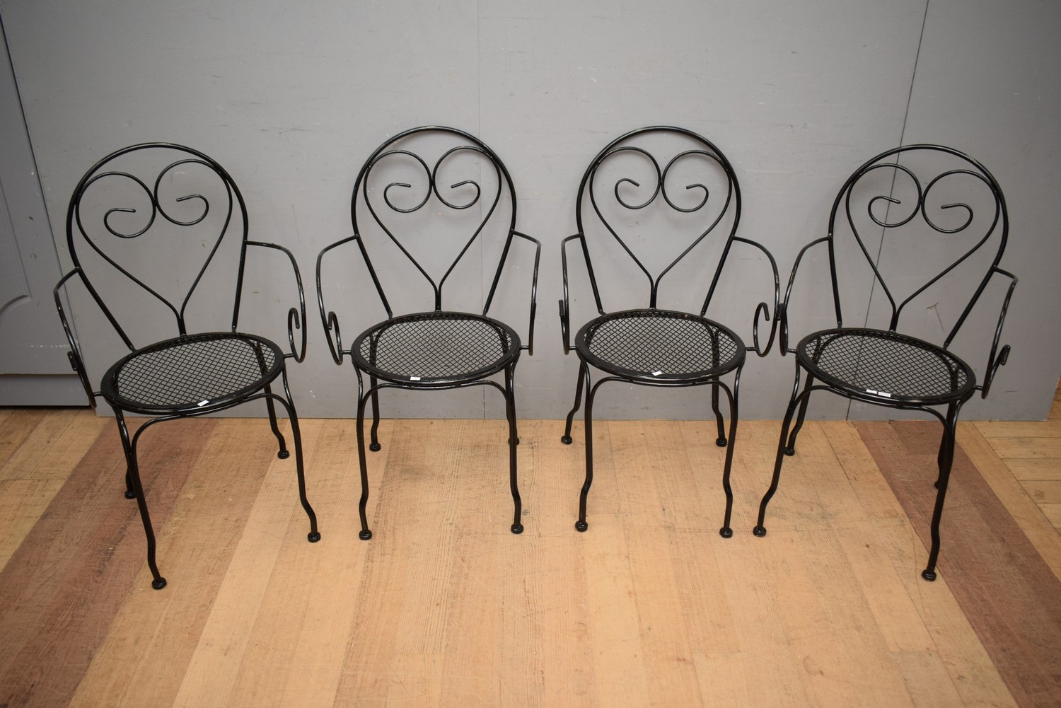 A SET OF FOUR FRENCH BISTRO STYLE CHAIRS ( 89H X 50W X 56D CM) (LEONARD JOEL DELIVERY SIZE: MEDIUM)