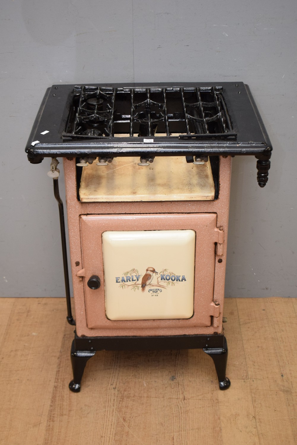 AN EARLY KOOKA CAST IRON STOVE (A/F) (89H X 66D X 51D CM) (PLEASE NOTE THIS HEAVY ITEM MUST BE REMOVED BY CARRIERS AT THE CUSTOMER'S EXPENSE. LEONARD JOEL STAFF CANNOT ASSIST CARRYING THIS ITEM) (X-LARGE ITEM)