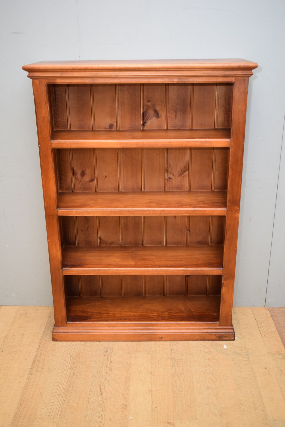 A TIMBER BOOKSHELF (A/F) (H152 X W107 X D36 CM) (PLEASE NOTE THIS HEAVY ITEM MUST BE REMOVED BY CARRIERS AT THE CUSTOMER'S EXPENSE. LEONARD JOEL STAFF CANNOT ASSIST CARRYING THIS ITEM) (X-LARGE ITEM)