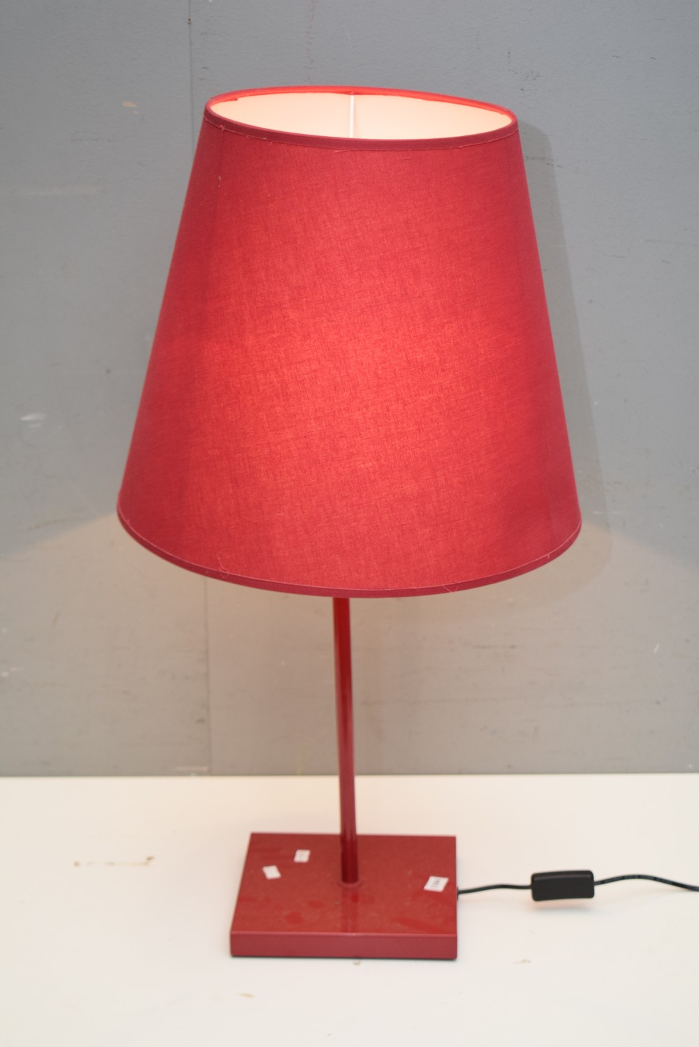 A RED CONTEMPORARY LAMP (76H CM) (LEONARD JOEL DELIVERY SIZE: MEDIUM)