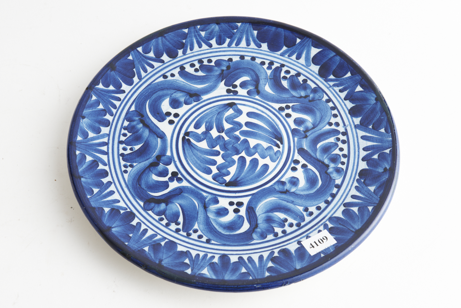 A SPANISH POTTERY WALL PLATE WITH IMPRESSED MARK OF JUAN TARIN MANISES, VALENICA (30 CM H), LEONARD JOEL LOCAL DELIVERY SIZE: SMALL
