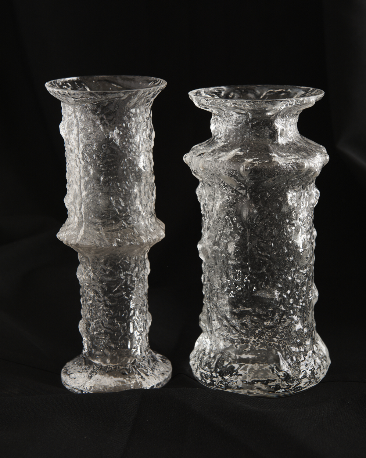 TWO MID-CENTURY BARK TEXTURED VASES BY TIMO SARPENEVA FOR IITTALA FINLAND (23 CM H), LEONARD JOEL LOCAL DELIVERY SIZE: SMALL