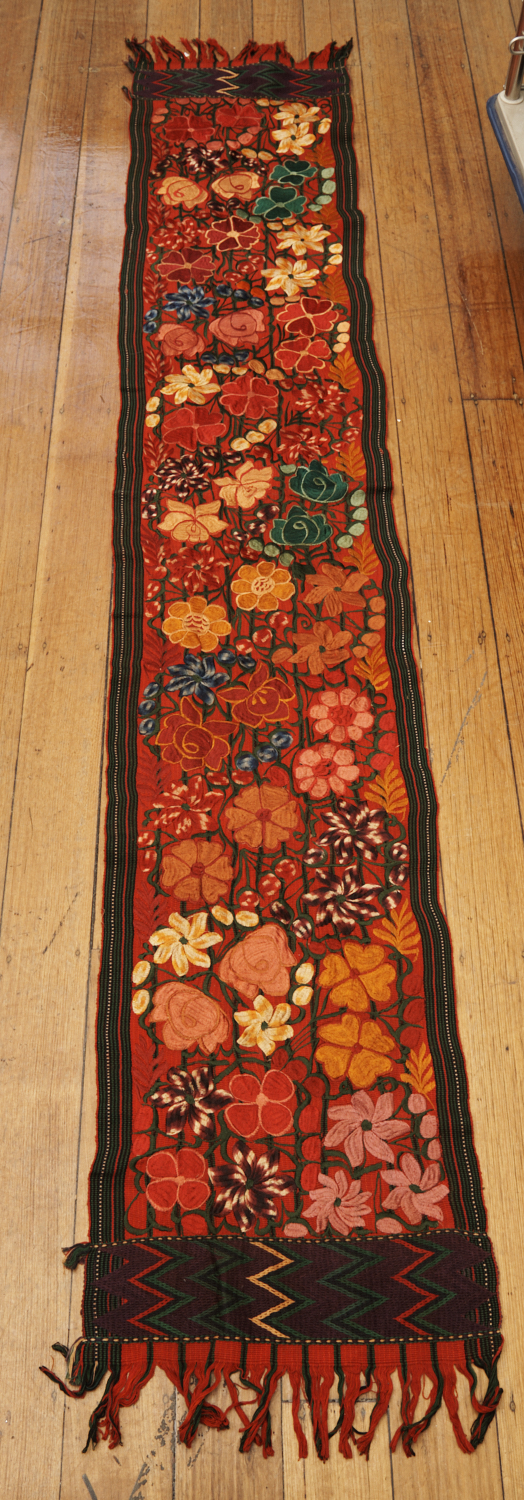 A TRADITIONAL MEXICAN OTOMI SILK EMBROIDERED WALL HANGING/TABLE RUNNER (43 X 250 CM), LEONARD JOEL LOCAL DELIVERY SIZE: SMALL