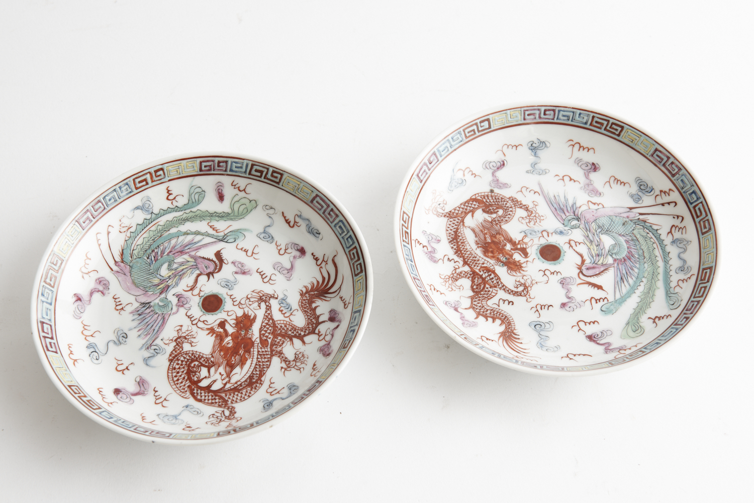 A PAIR OF HAND PAINTED CHINESE PLATES DIA.18CM, LEONARD JOEL LOCAL DELIVERY SIZE: SMALL