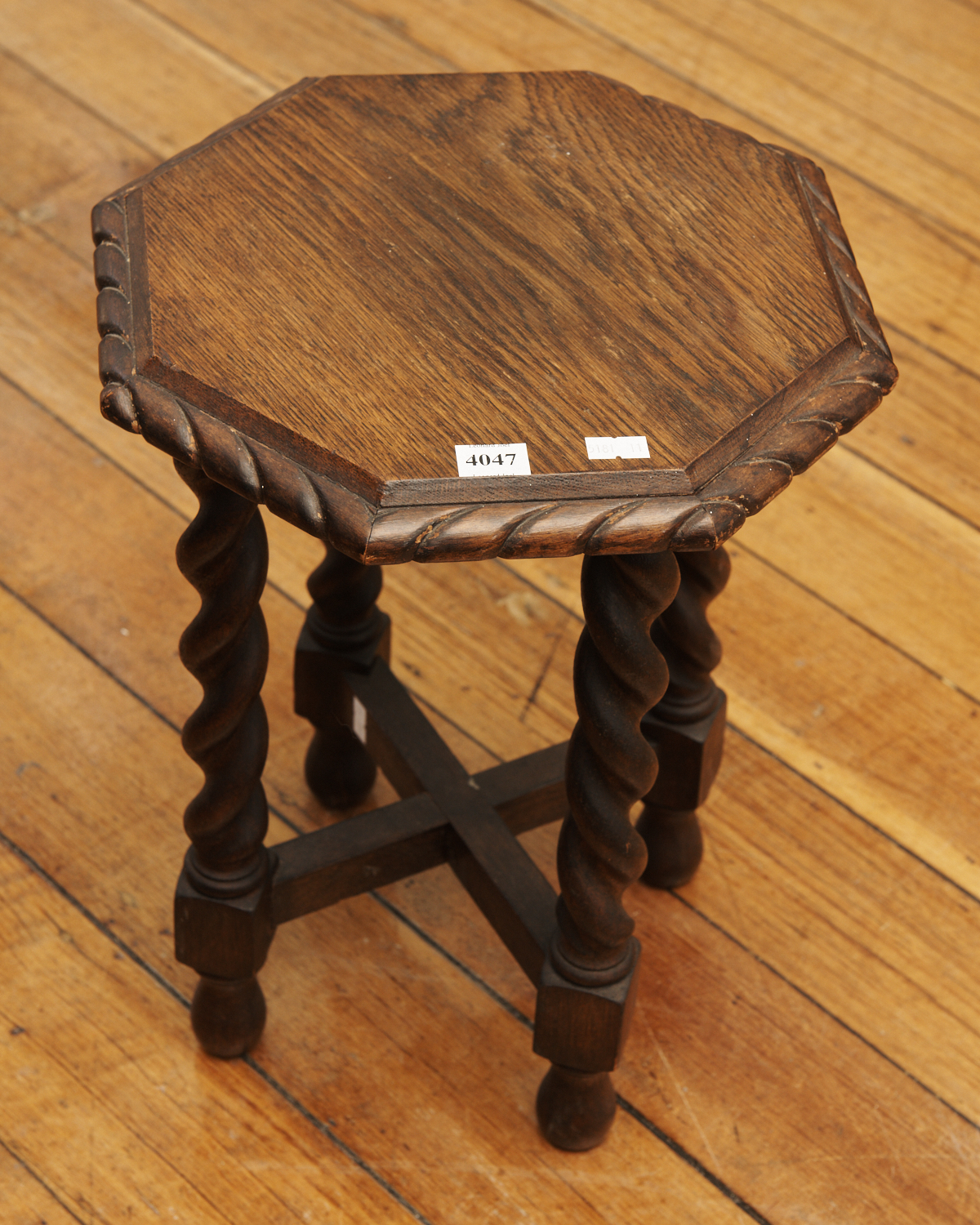 A SMALL JACOBEAN STYLE STOOL, 40 CM HIGH, LEONARD JOEL LOCAL DELIVERY SIZE: SMALL