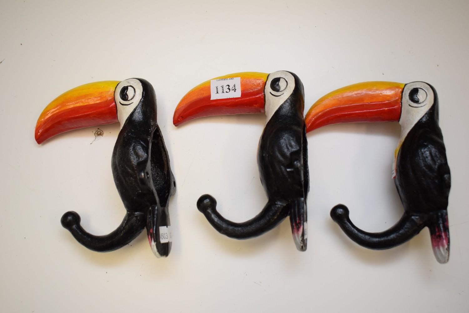 A COLLECTION OF THREE TOUCAN COAT HOOKS (15H CM) (LEONARD JOEL DELIVERY SIZE: SMALL)