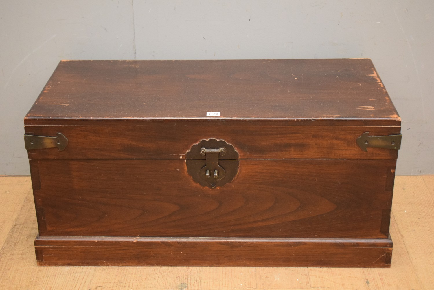 A SMALL WOODEN STORAGE TRUNK (A/F - LID SEPARATED TO BASE) (34H X 72W X 36DCM) (LEONARD JOEL DELIVERY SIZE: MEDIUM)