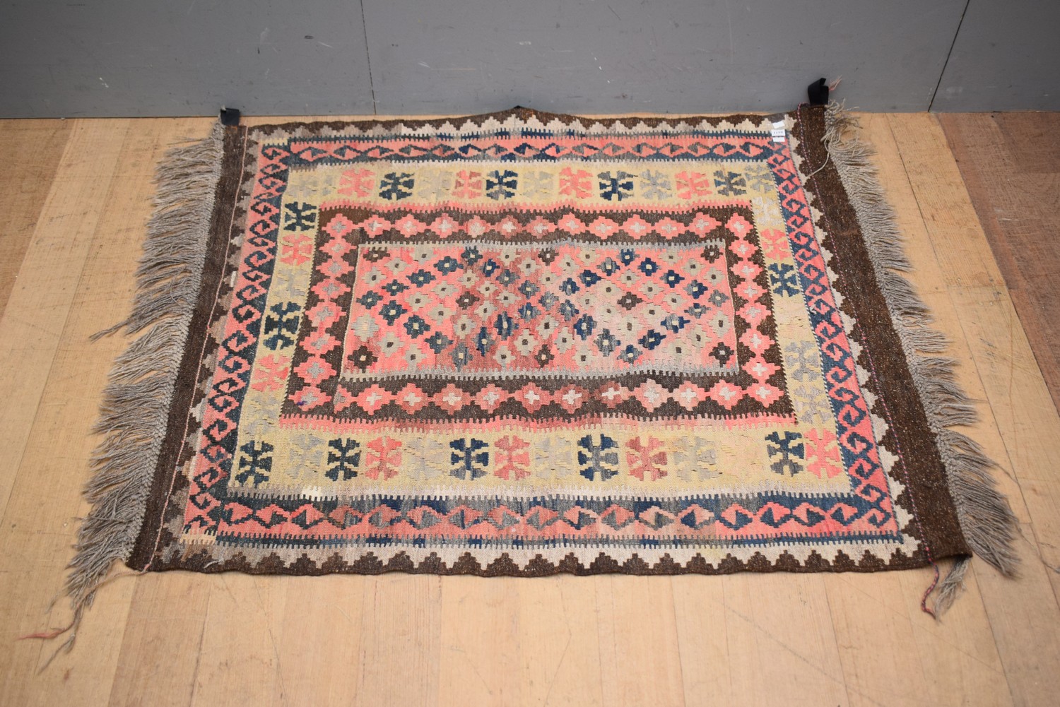 A PAKISTANI WOOL PRAYER RUG CONVERTED TO A WALL HANGING (A/F) (95L x 135W CM) (LEONARD JOEL DELIVERY SIZE: SMALL)