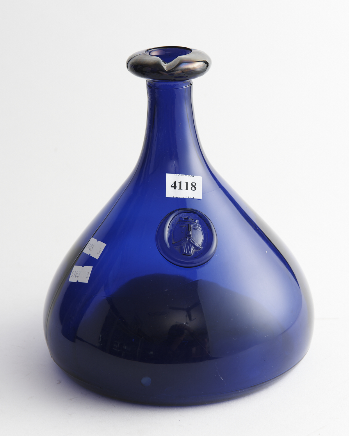 A BRISTOL BLUE GLASS BOTTLE H.23CM, LEONARD JOEL LOCAL DELIVERY SIZE: SMALL