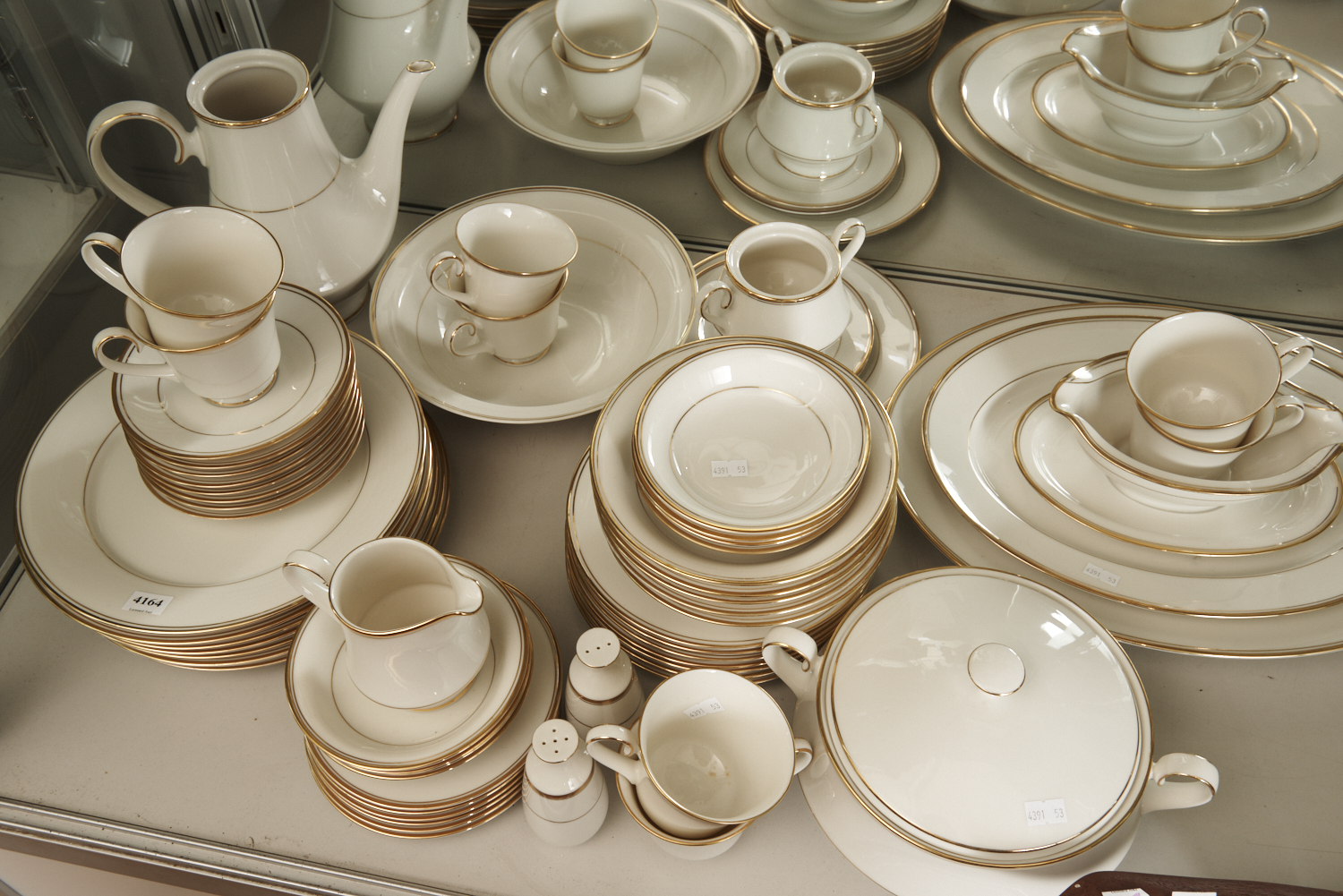 A NORITAKE GOLD RIMMED WHITE PORCELAIN DINNER SERVICE (A/F), LEONARD JOEL LOCAL DELIVERY SIZE: MEDIUM
