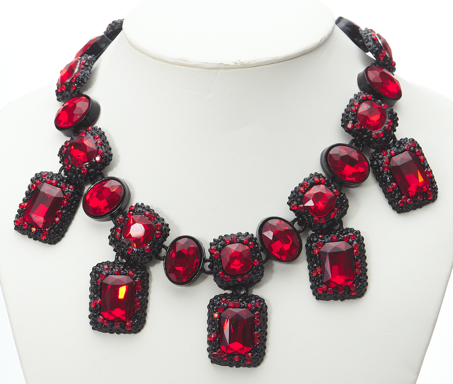 A RED PASTE COSTUME NECKLACE, UNSIGNED, LENGTH ADJUSTABLE