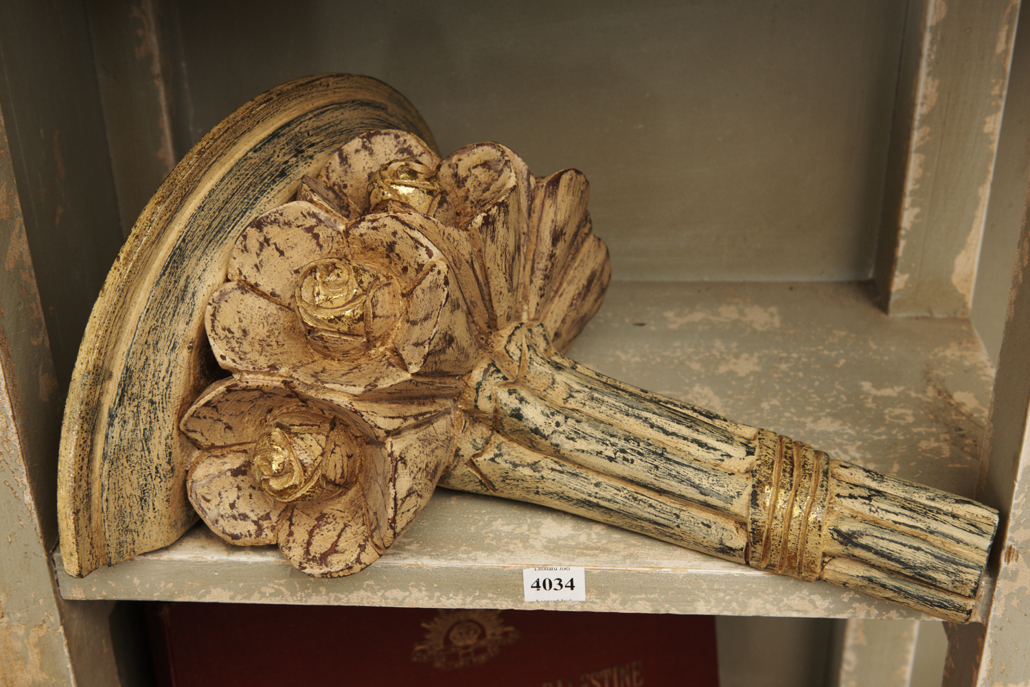 AN ORNATE FLORENTINE STYLE GILT WOOD WALL SCONCE, 33 CM HIGH, LEONARD JOEL LOCAL DELIVERY SIZE: SMALL