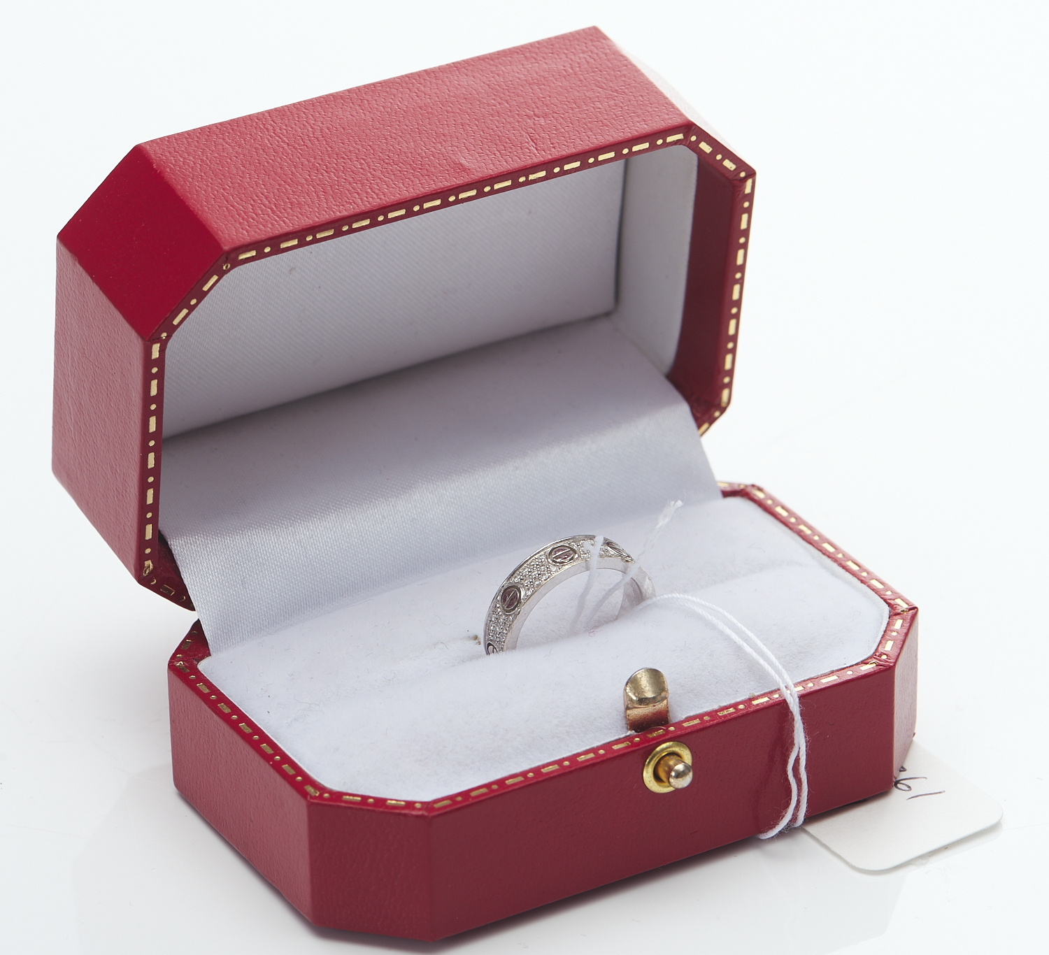 Ring shows signs of wear with minor dents and scratches to the band. All stones are secure in their settings.