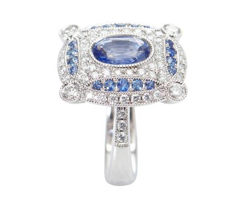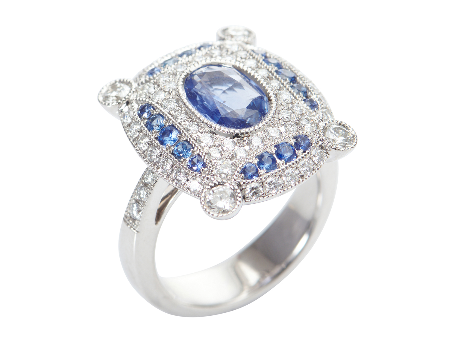 AN ALEXANDRITE AND DIAMOND RING Featuring an oval alexandrite weighing 4.13cts, flanked by round brilliant cut diamonds totalling 0....
