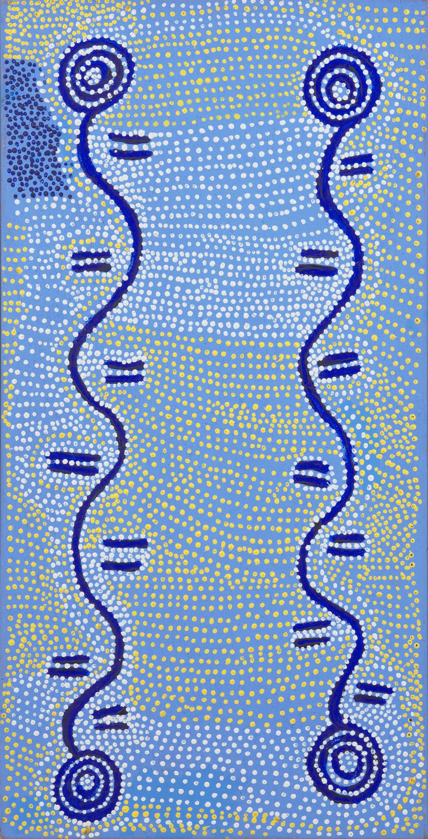 inscribed verso with artist's name and Warlukurlangu Artists cat. no. 512/04 and High on Art cat. no HA17096