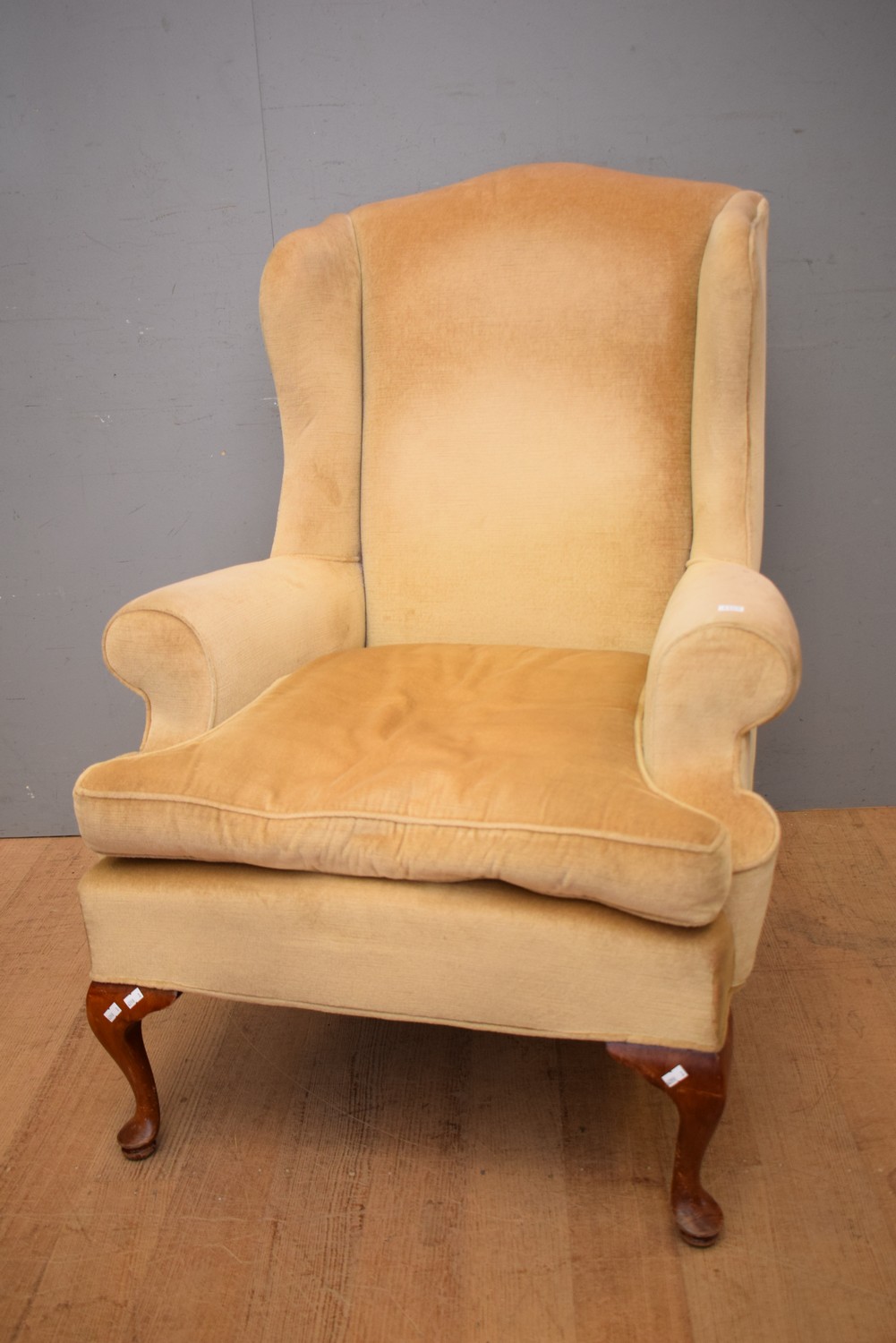 A VELVET WINGBACK ARMCHAIR ( 107H X 82W X 92D CM) (LEONARD JOEL DELIVERY SIZE: LARGE)