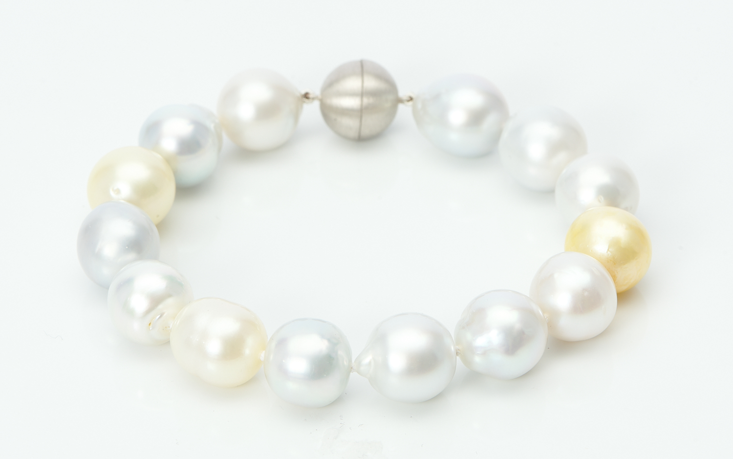 A SOUTH SEA PEARL BRACELET COMPRISING FOURTEEN NEAR ROUND PEARLS OF VARYING HUES MEASURING 12.0MM, TO A MAGNETIC BALL CLASP IN 9CT WHITE GOLD