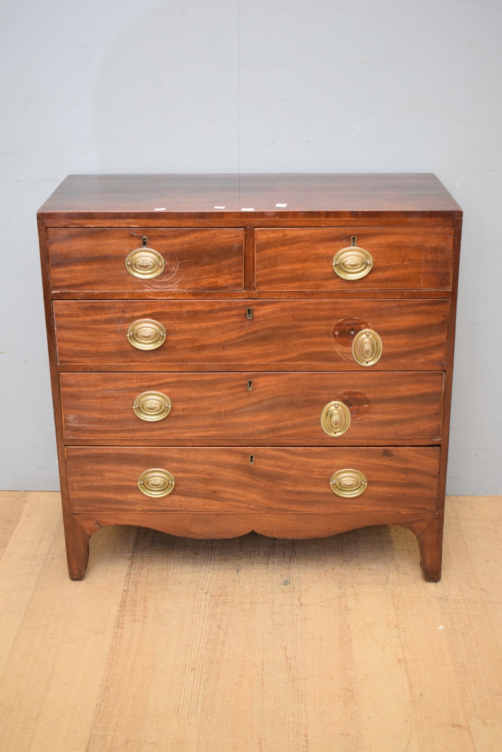 A REGENCY FIVE DRAWER CHEST WITH BRASS DETAILING (A/F) ( 92H X 90W X 42D CM) (LEONARD JOEL DELIVERY SIZE: LARGE)