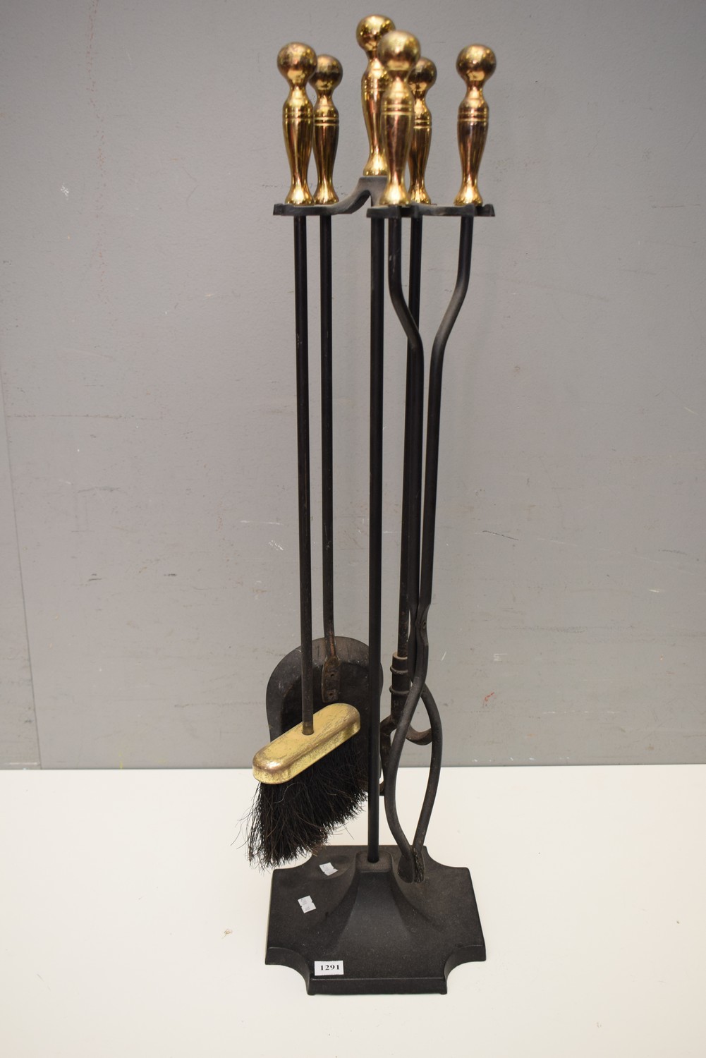 A SET OF FIRE TOOLS ON STAND (A/F) (80H CM) (LEONARD JOEL DELIVERY SIZE: SMALL)