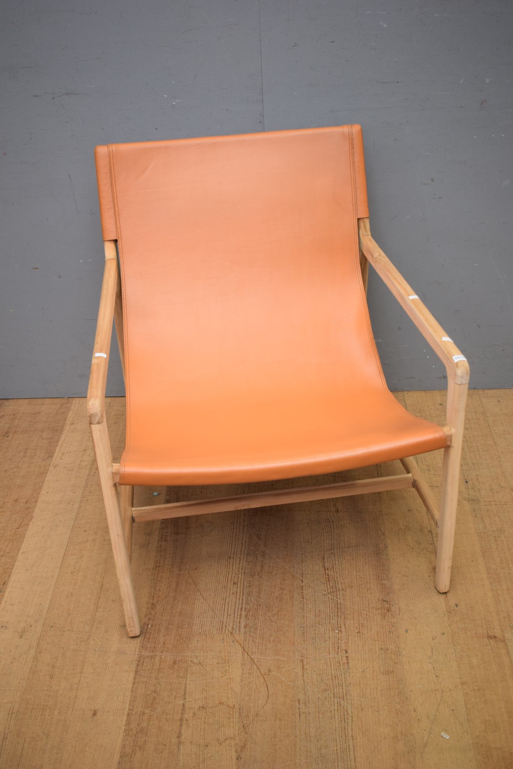 A TEAK AND LEATHER ACCENT CHAIR (H82 X W71 X D80 CM) (LEONARD JOEL DELIVERY SIZE: MEDIUM)