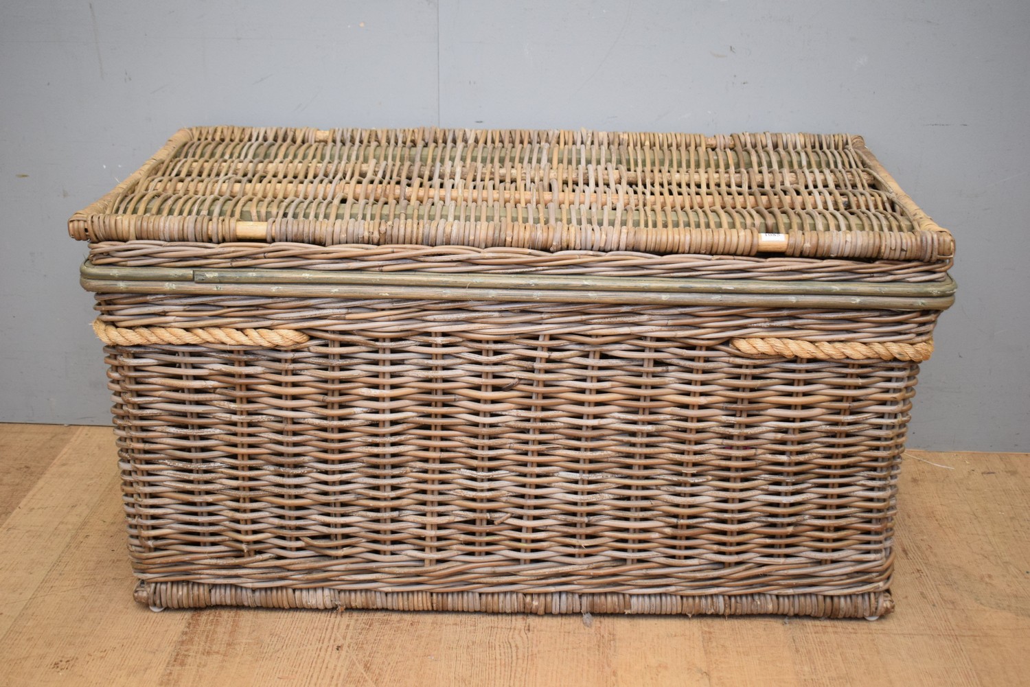 A LARGE WICKER STORAGE BASKET (H53 X W103 X D52) (LEONARD JOEL DELIVERY SIZE: LARGE)